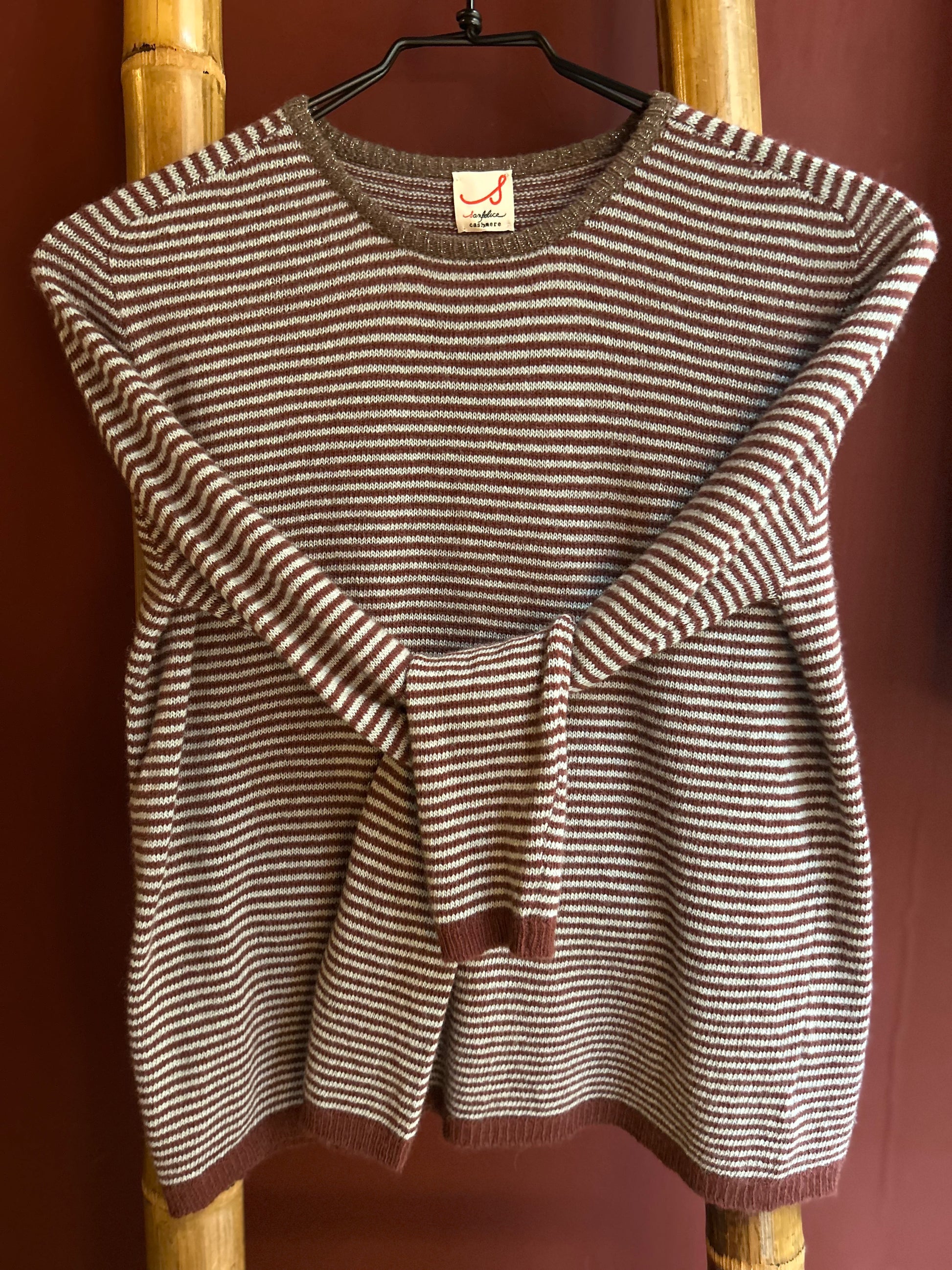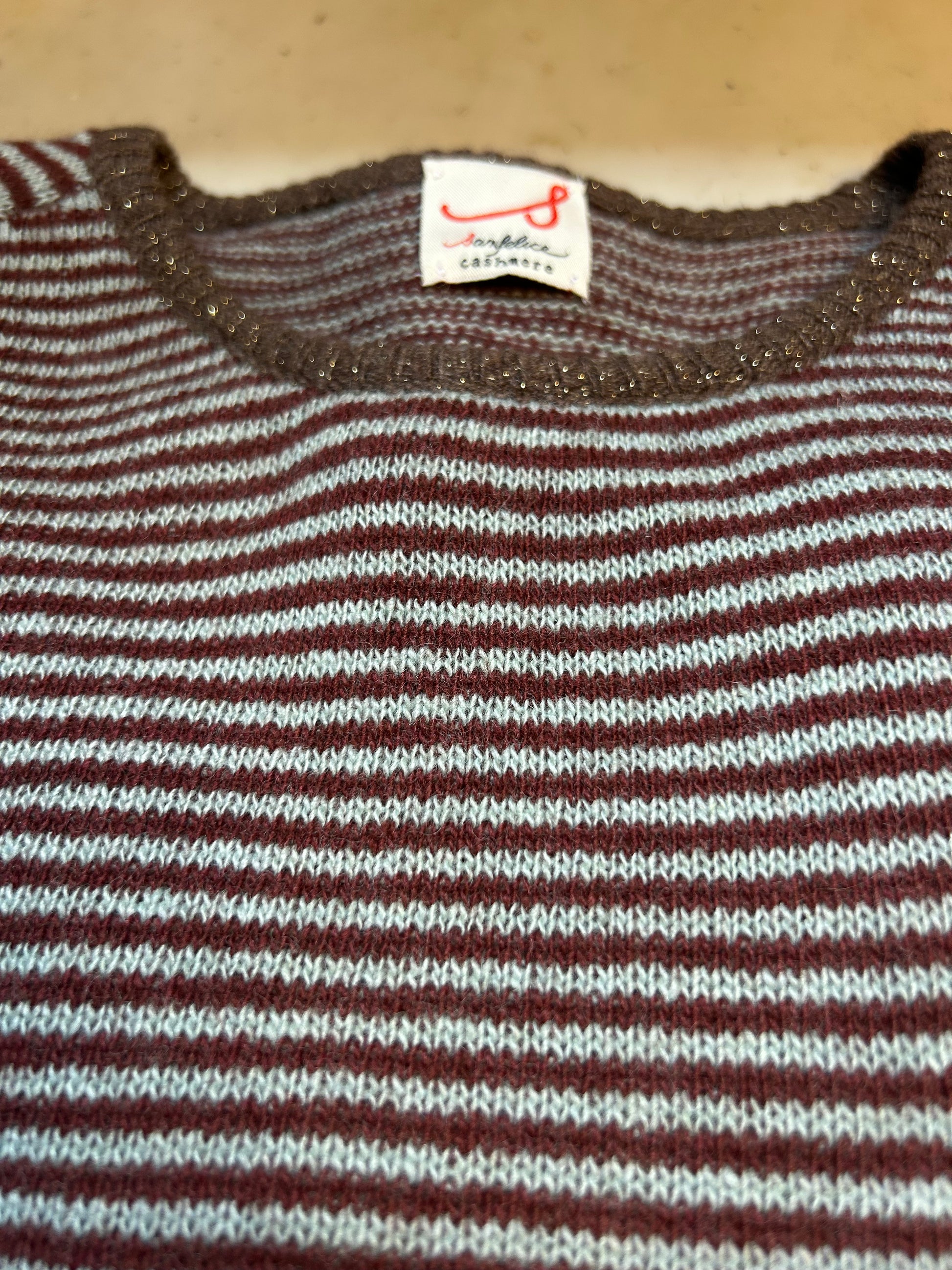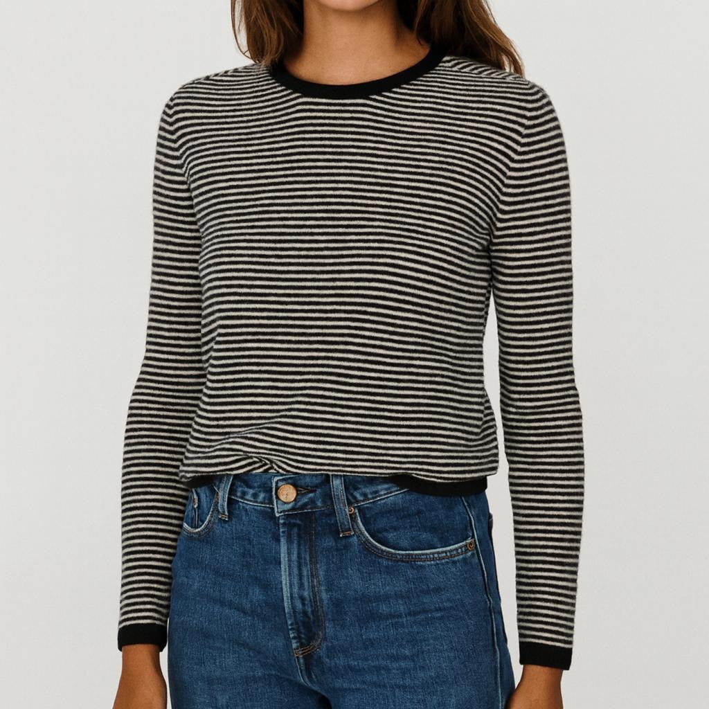 Questo golf a righe Lisetta è realizzato interamente in Italia, con pregiato cashmere, lana e seta italiano lavorato a maglia in Umbria. La linea dritta e il girocollo con colore a contrasto garantiscono un design elegante e contemporaneo, perfetto per chi cerca qualità e stile senza rinunciare al comfort. Un capo versatile, ideale per arricchire ogni guardaroba con un tocco di artigianalità italiana.